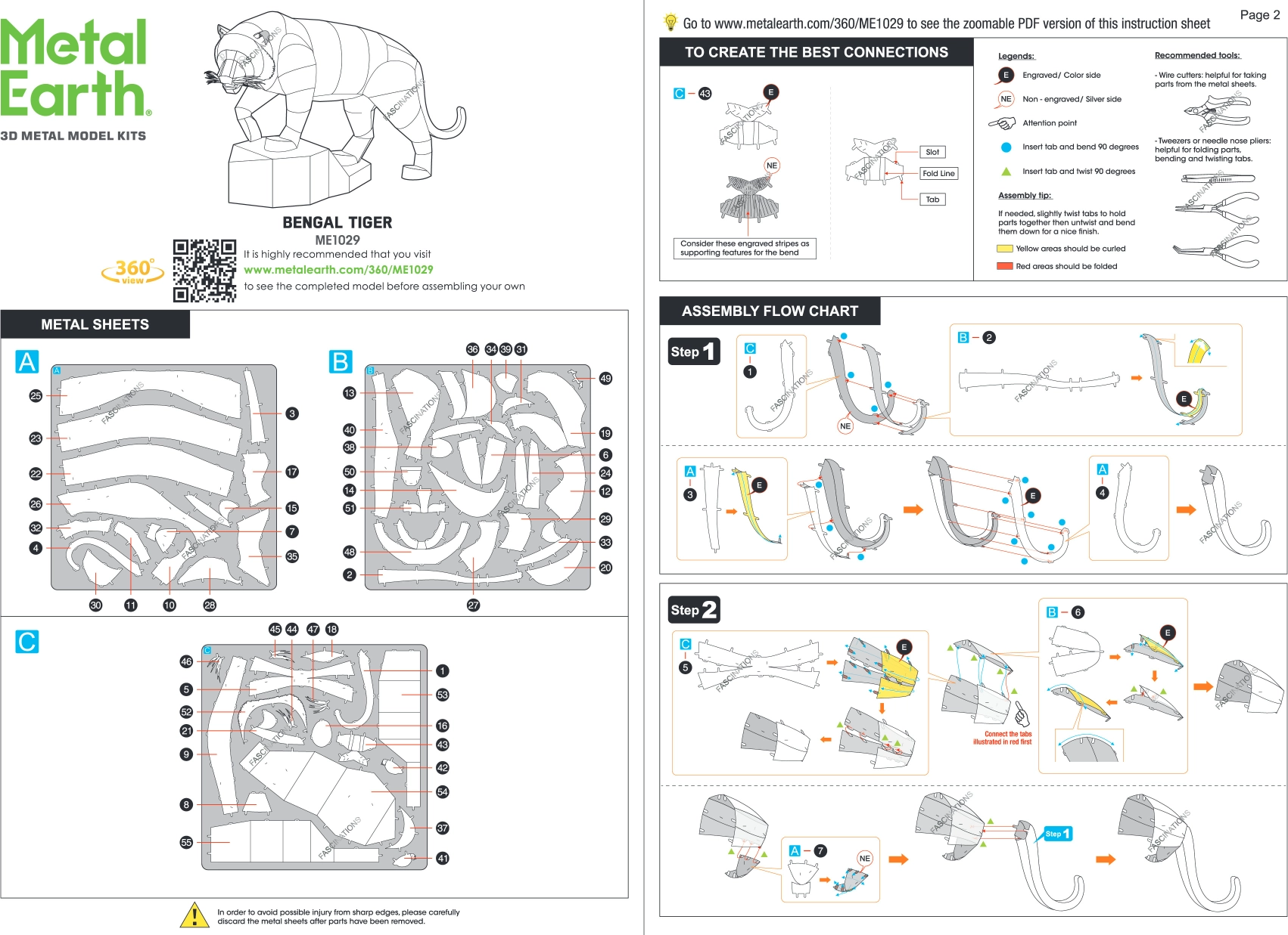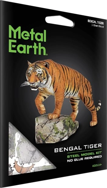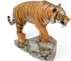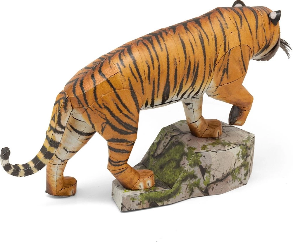 Descoperă plăcerea modelismului de precizie cu puzzle-ul 3D metalic al tigrului bengalez. Scoți cu ușurință piesele din foile de oțel și le îmbini cu ajutorul clemelor pentru a obține un model realist de excepție. Datorită gravurii detaliate cu laser, ies în evidență dungile și formele musculare ale felinei.