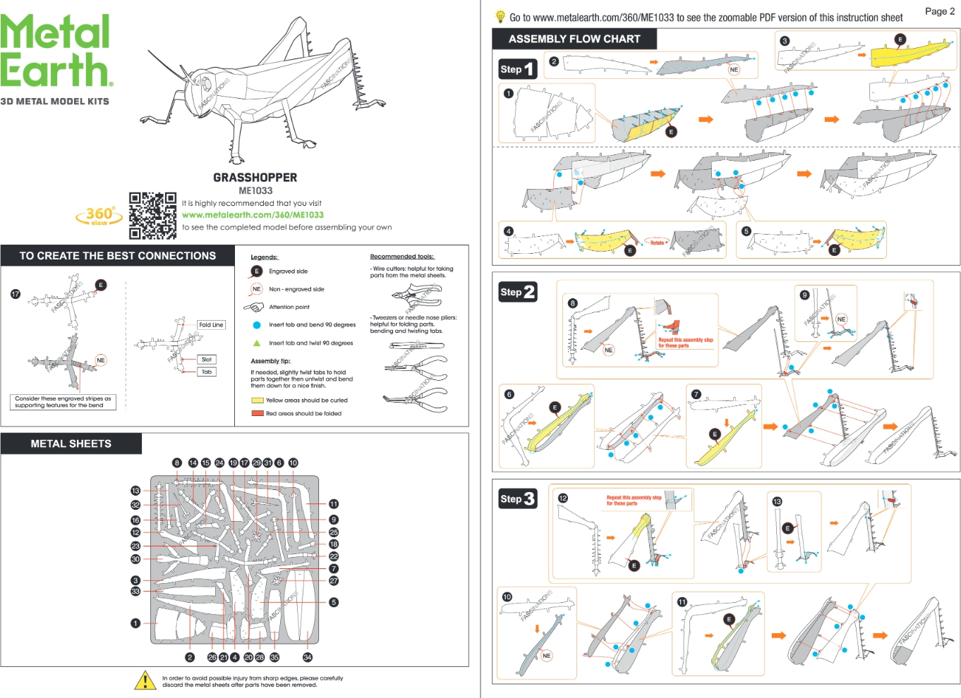 Piesele se conectează ușor prin îndoirea cârligelor – sunt suficiente clești subțiri și răbdare. Îmbinări curate, construcție solidă.