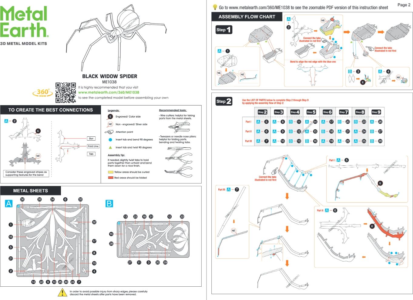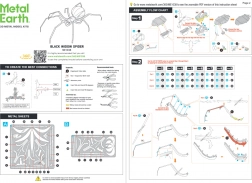 METAL EARTH aduce puzzle-uri 3D metalice, pe care le transformi din foi plate de oțel într-un model impresionant de văduvă neagră. Piesele se scot ușor din foi și se îmbină cu ajutorul încuietorilor – fără adeziv. Datorită gravurii laser detaliate ies în evidență texturile realiste ale corpului și picioarelor, iar modelul final devine o decorațiune grozavă, un cadou sau o piesă de colecție.
