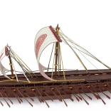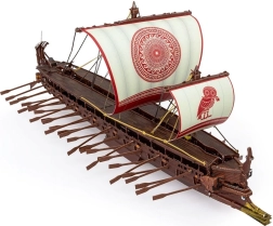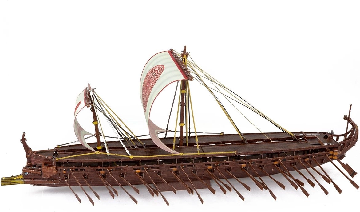 Liniile fine ale pânzelor, bordajul și elementele de pe punte sunt decupate și gravate cu mare precizie pentru un aspect autentic al triremei.