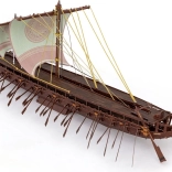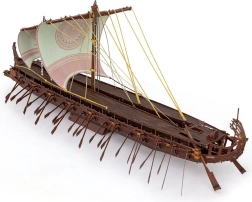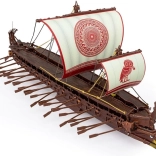 Modelul impresionează prin numeroasele vâsle, pânzele decorate și forma prorei – ideal pentru iubitorii de istorie și design.