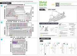 Asamblarea se face fără lipici – piesele se scot din foița metalică și se conectează prin cleme ingenioase. Cu puțină răbdare și unelte de bază va rezulta o piesă de colecție realistă, care se evidențiază pe raft sau pe birou.
