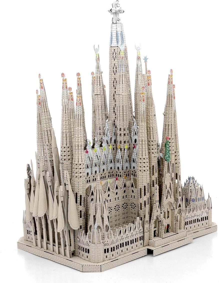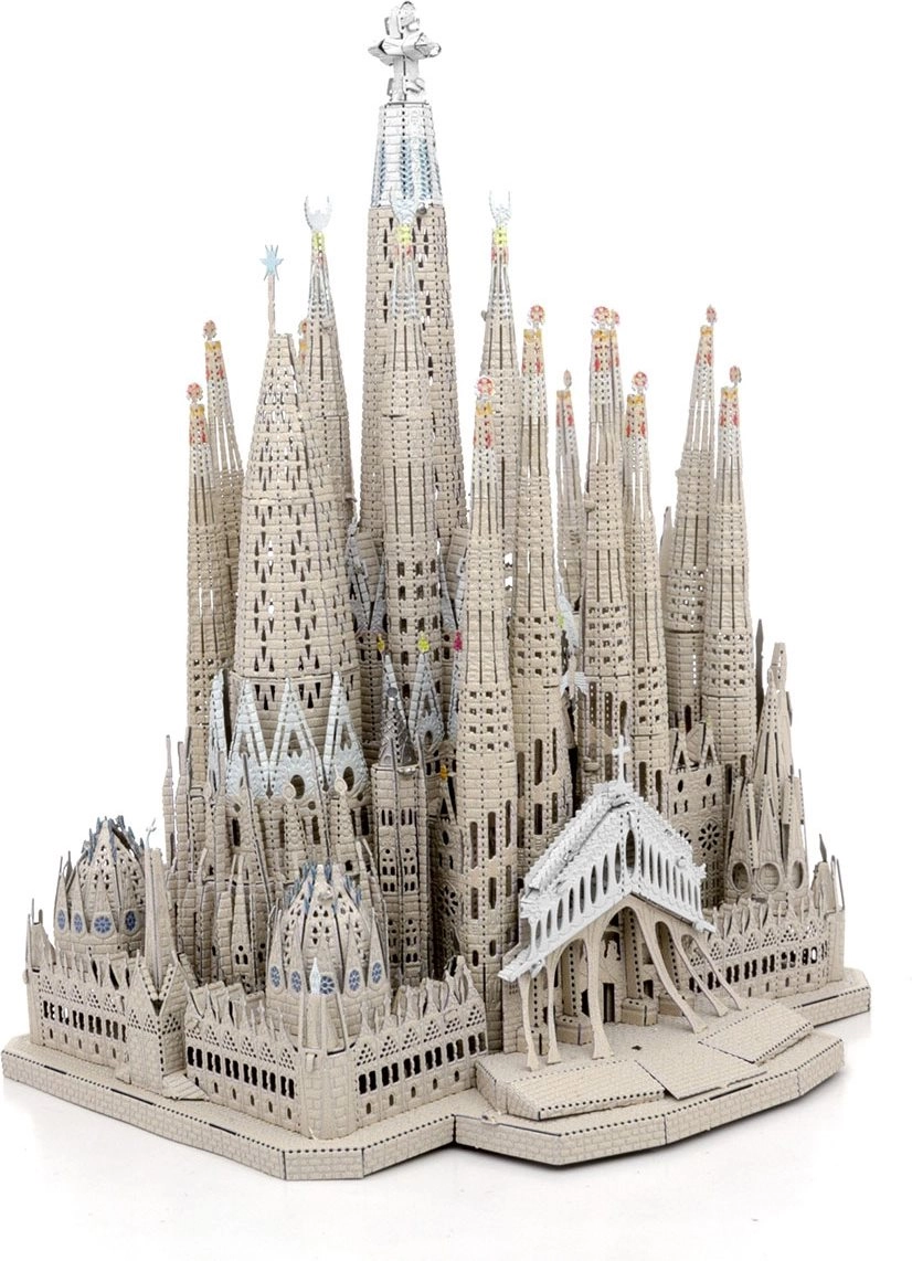 Gravurile fine de pe piesele metalice redau fidel fațadele, turnurile și ferestrele Sagrada Família pentru un aspect cu adevărat realist.