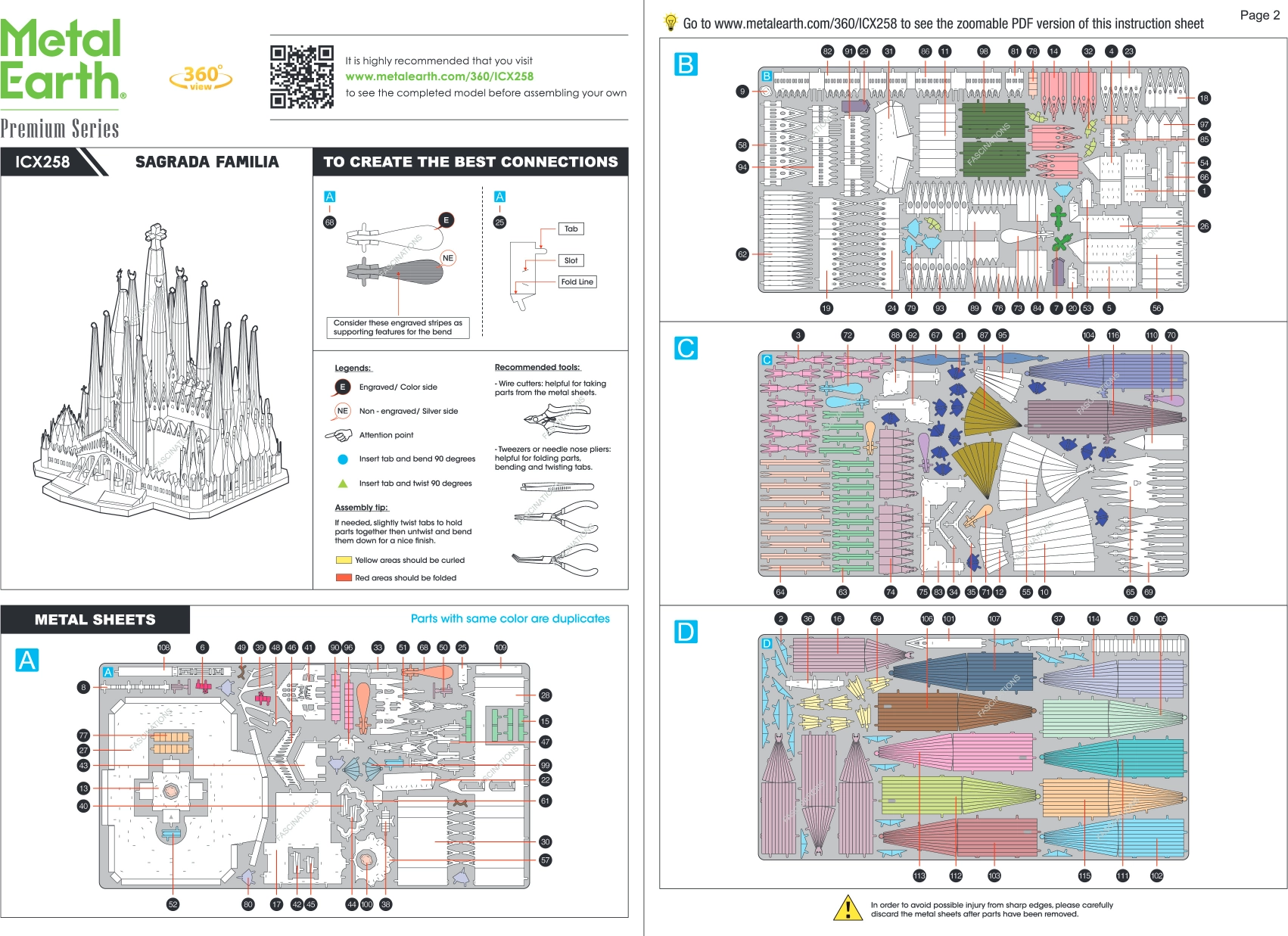Setul premium METAL EARTH permite crearea unui impresionant model 3D al Sagrada Família din foițe plate de oțel. Piesele individuale se scot din plăcuțele metalice și se conectează prin zăvoare – fără lipici. Detaliile gravate cu laser accentuează fațadele, turnurile și ferestrele, oferind modelului un aspect autentic.