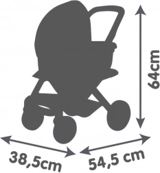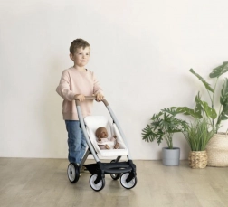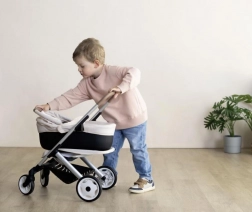 Căruciorul oferă control lin cu roți față pivotante și mers silențios datorită stratului antifonic. Husele rezistente din țesătură plasticată se întrețin ușor – este suficient să le ștergi cu o cârpă umedă. Datorită mânerului ergonomic (65 cm), este confortabil pentru copii de vârste diferite. Potrivit pentru păpuși de până la 42 cm.