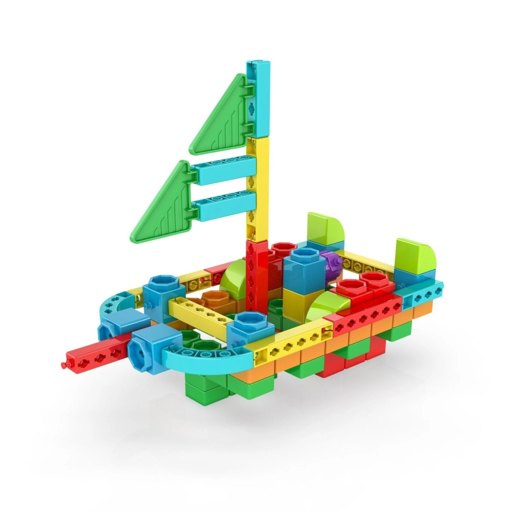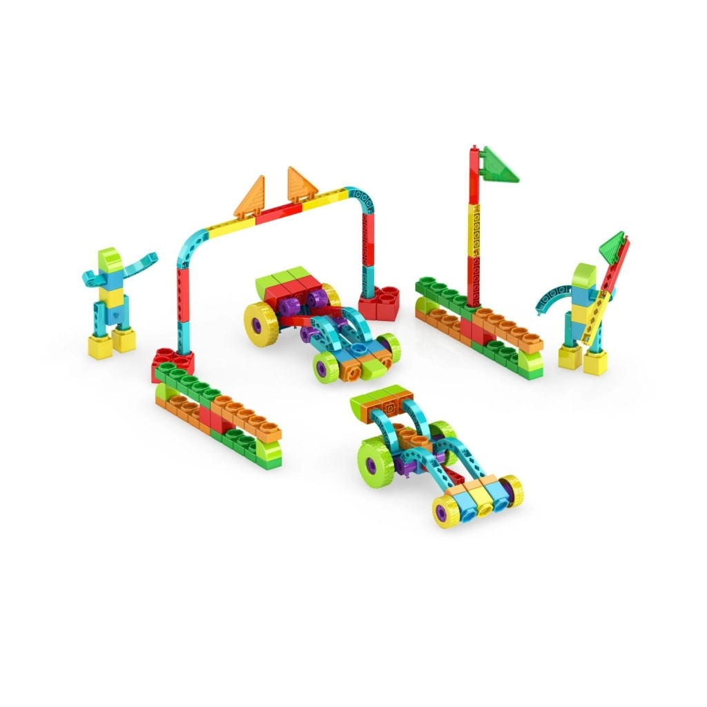 Construiți mașini de curse, elicopterul sau alte vehicule cu părți mobile și roți – pentru și mai multă distracție și joacă.
