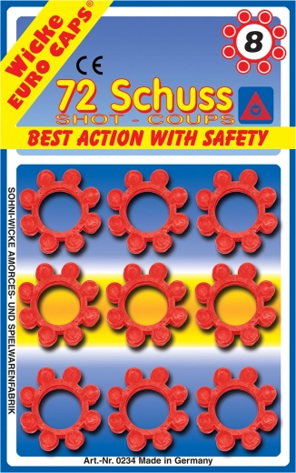 În pachet veți găsi 9 tamburi, care oferă împreună 72 de focuri. Capsule ideale pentru jocuri în aer liber, petreceri aniversare și costume tematice.