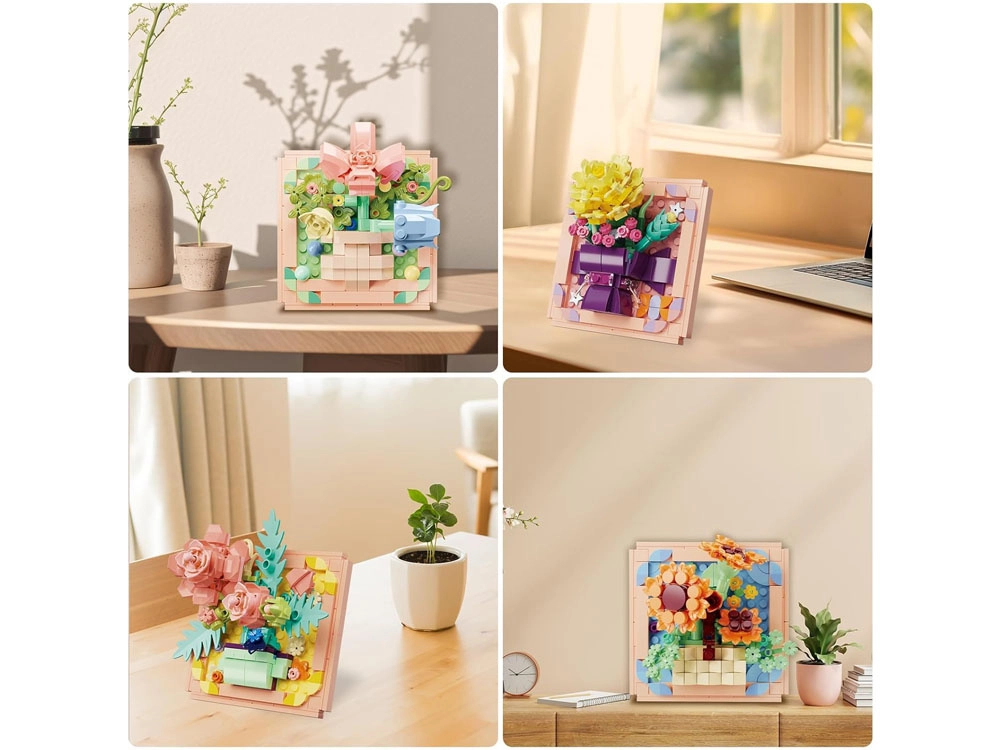 Creează-ți propria artă florală din peste 200 de piese de construcție și transformă-ți casa într-o galerie înflorită. Fiecare set oferă o compoziție florală 3D în ramă, culori vii, structură stabilă și expunere decorativă pe raft sau pe perete. Ideal pentru relaxare creativă, lucru în echipă și decorațiune de durată, care nu se ofilește niciodată.