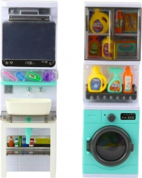 Acest set de baie pentru casă, realizat cu atenție la detalii, oferă tot ce este necesar pentru un joc veridic: chiuvetă cu oglindă, mașină de spălat cu încărcare frontală, dulăpior de depozitare și accesorii bogate. Oglinda se aprinde după introducerea bateriei, iar mașina de spălat oferă efecte luminoase și sonore, pentru o experiență realistă.
