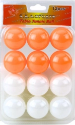 Set de mingi de ping-pong de calitate, în culorile alb și portocaliu, pentru joc recreativ și antrenament. Conține 12 bucăți, fabricate din plastic rezistent cu rebound excelent și greutate redusă pentru un joc cursiv și distractiv acasă, la club sau la școală.