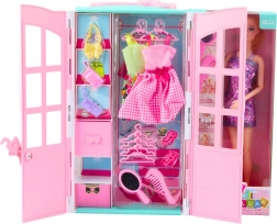 Acest set bogat echipat va încânta orice copil care iubește moda și stilul. Dulapul cu uși și polițe ascunde rochițe colorate, umerașe practice, pantofi și genți asortate. Cu ajutorul oglinzii și al pieptănului, păpușa se pregătește pentru orice ocazie. Jocul dezvoltă imaginația, motricitatea fină și simțul pentru combinarea culorilor și a stilurilor.