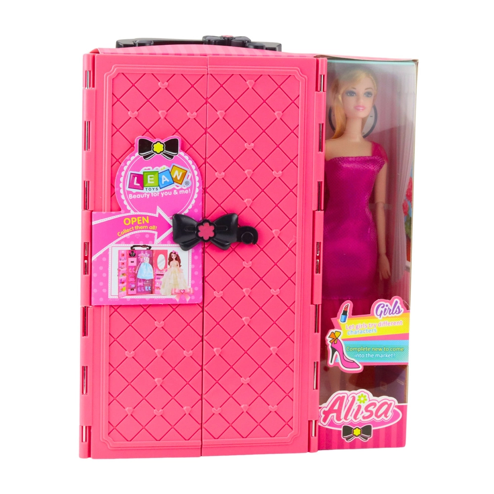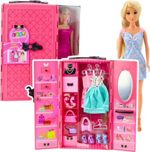 Păpușă stilată cu dulap roz pentru haine oferă ore de distracție creativă. Copiii pot îmbrăca păpușa, combina rochii, pantofi și genți și crea propriile stilizări fashion. Dulapul are uși care se deschid, în interior oglindă și rafturi pentru depozitarea ordonată a accesoriilor. Un cadou grozav pentru dezvoltarea creativității și simțului estetic.