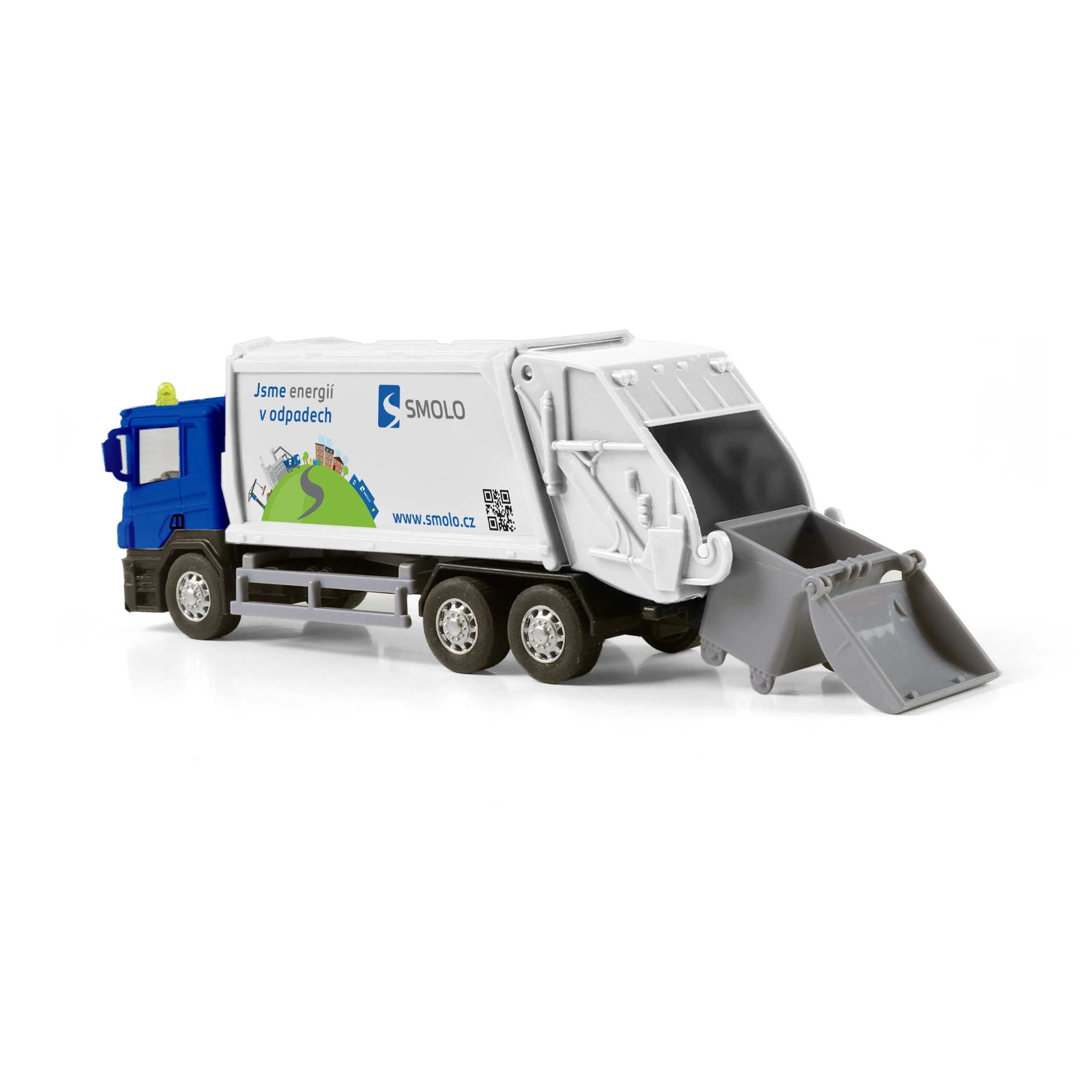 Descoperiți mașina de gunoi redată în detaliu cu logo-ul SMOLO, care va atrage copiii prin rezistență și elemente funcționale. Partea frontală metalică și bena din plastic asigură un raport plăcut între greutate și durabilitate. Datorită mecanismului de întoarcere, mașina se manevrează ușor și însuflețește orice joc de servicii municipale.