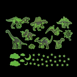 Transformă camera într-o lume preistorică datorită autocolantelor cu dinozauri, care după expunere la lumină strălucesc ușor în întuneric. Instalarea este rapidă și curată – trebuie doar să dezlipești și să lipești pe o suprafață netedă și uscată. Ideal pentru camerele copiilor, săli de joacă sau ca decorațiune originală pentru mobilier.