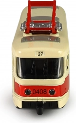 Acest tramvai metalic T3, cu o lungime de aprox. 16 cm, surprinde fidel legenda șinelor urbane – cel mai răspândit vagon de tramvai din lume. Execuția robustă, combinată cu detalii precise, pantograf și vopsea în două culori, conferă modelului un aspect realist pentru vitrinele de colecție și pentru joacă creativă.