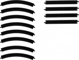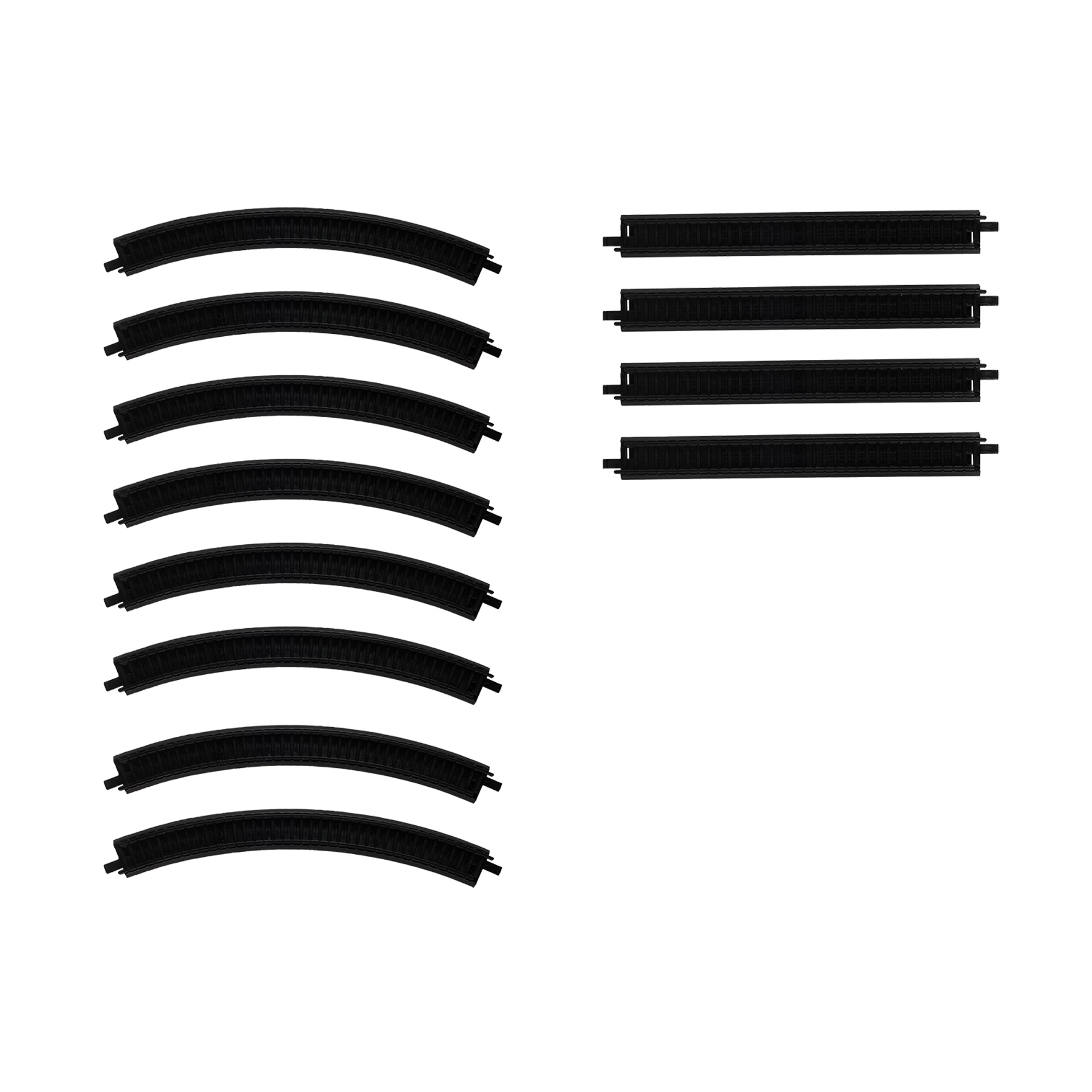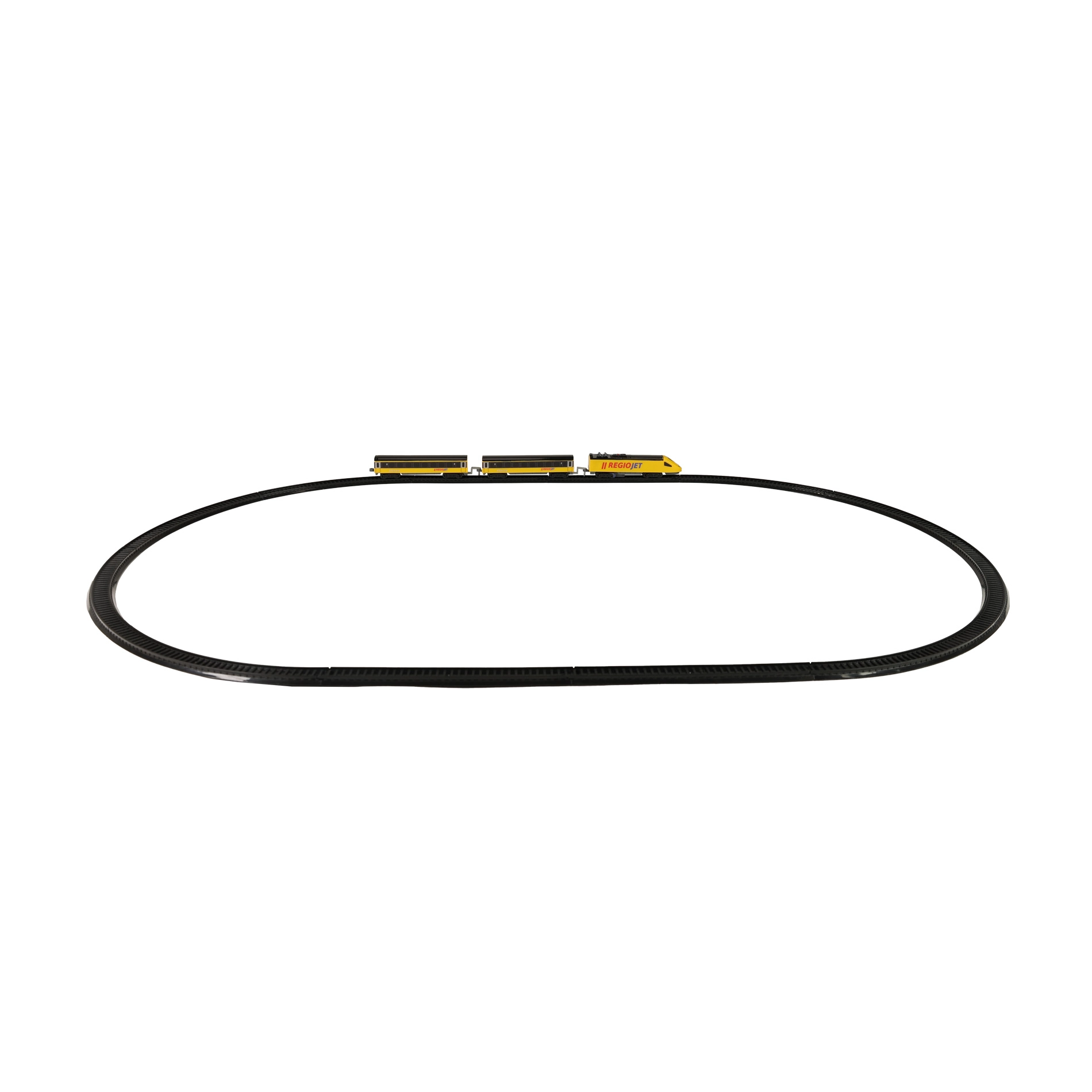 Setul conține șine curbe și drepte din care poți asambla un circuit închis pentru rularea neîntreruptă a trenului.