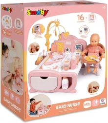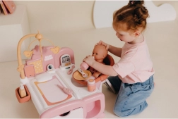 Colțul electronic Baby Nurse SMOBY este alegerea perfectă pentru micii îngrijitori. Trei zone de joacă – bucătărioară cu scăunel de hrănire, stație de îngrijire și pătuț cu carusel – susțin jocul creativ și dezvoltarea motricității fine, empatiei și imaginației. Camera integrată de jucărie și babysitter-ul electronic cu sunet adaugă o experiență autentică de îngrijire a bebelușului.