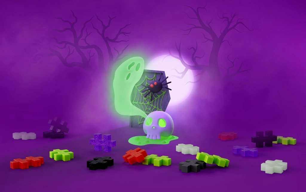Descoperă distracție nesfârșită cu tubul Plus-Plus Spooky, care ascunde 100 de piese universale pentru construcții în 2D și 3D. Piesele speciale fosforescente oferă creațiilor tale o atmosferă magică și înfricoșătoare – construiește fantome, lilieci sau orice îți permite imaginația.
