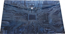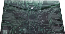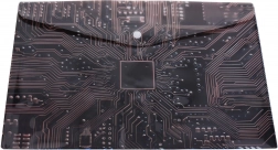 Un plic pentru documente, stilat și practic, îți protejează hârtiile de format A4 de șifonare și praf. Datorită închiderii sigure cu capse, plasticului rezistent și motivului original inspirat de placa de bază, documentele tale vor fi mereu depozitate în siguranță și bine organizate. Disponibil în 4 variante de culori.