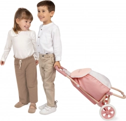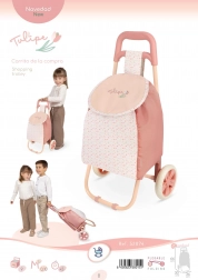 Ușoară și pliabilă, geanta pentru copii pe roți din colecția Tulipe încântă prin designul floral delicat, manipularea facilă și buzunarul textil încăpător. Ideală pentru jocul de-a cumpărăturile, călătorii cu păpușile și transportul jucăriilor.