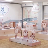 Modelul floral delicat în tonuri pastelate se potrivește cu alte accesorii din colecție și susține jocul creativ.