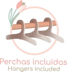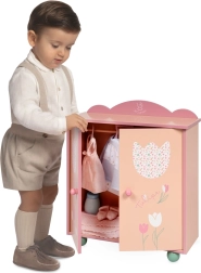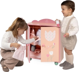 Oferiți copiilor un loc elegant pentru hăinuțele păpușilor lor. Dulapul din lemn din colecția TULIPE, în tonuri pastelate calde de somon, cu un model floral delicat, se potrivește frumos în orice cameră. Datorită barei pentru umerașe și celor trei umerașe rezistente, micile stiliste au totul la îndemână și bine organizat.