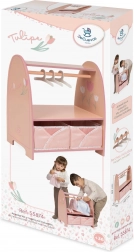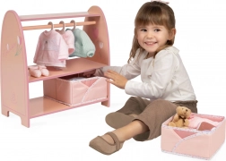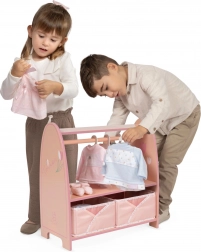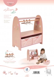 Oferiți-le copiilor ordine în lumea păpușilor. Acest cuier șifonier compact din lemn din colecția TULIPE aduce o soluție practică pentru agățarea și depozitarea hăinuțelor și accesoriilor. Bara pentru umerașe cu 3 umerașe din lemn găzduiește hăinuțe de până la cca 19 cm, iar raftul inferior și cele 2 coșulețe textile pliabile păstrează restul la îndemână.