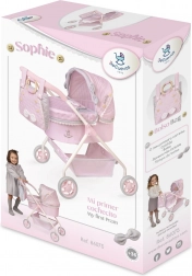 Încântătorul cărucior pentru păpuși din colecția Sophie a fost creat cu accent pe confort, siguranță și manevrare facilă. Designul roz deschis este completat de detalii discrete gri și albe, care subliniază stilul romantic. Datorită mânerului jos și construcției ușoare, este potrivit în special pentru cele mai mici domnișoare.