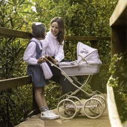 Elegantul cărucior pliabil pentru păpuși din colecția Verona, în culori naturale pastelate, va încânta orice mică mămică. Oferă mâner reglabil pe înălțime 52–81 cm, landou spațios cu saltea, capotină pliabilă și coș de depozitare inferior. Include și o geantă detașabilă într-un design asortat. Datorită arcurilor pentru legănare și finisajului de calitate, plimbarea cu păpușa este confortabilă și distractivă.