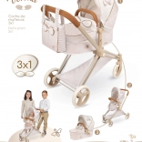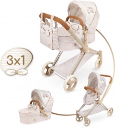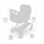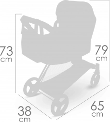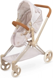 Căruciorul este pliabil, ocupă minimum de spațiu după pliere și este practic pentru transport. Landoul portabil detașabil permite transportarea în siguranță a păpușii, în timp ce capotina reglabilă, centurile în 3 puncte și roțile frontale pivotante asigură o deplasare confortabilă și lină. Sunt incluse o geantă stilată și un coș inferior pentru toate cele necesare.