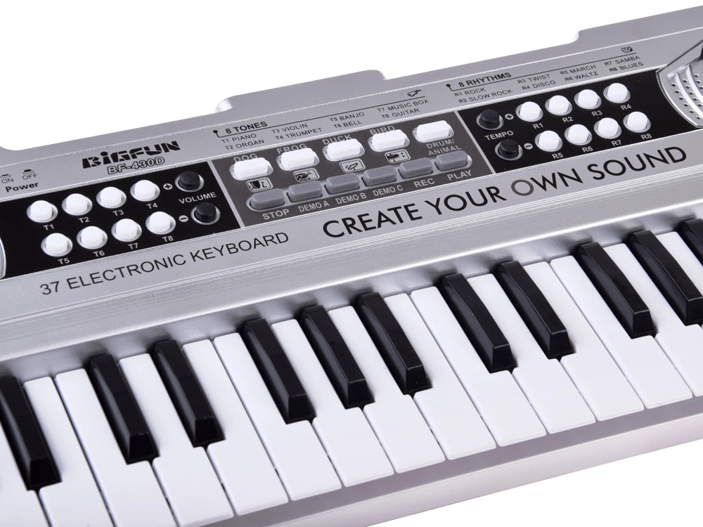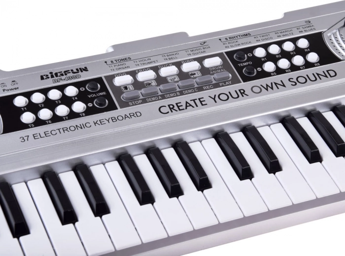 Descoperă bucuria muzicii cu mini clape ușoare și intuitive, în finisaj argintiu. Datorită celor 37 de clape, panoului clar și difuzoarelor integrate, sunt ideale pentru primii pași în lumea melodiei și ritmului. Echiparea bogată de funcții sprijină ascultarea activă, coordonarea și creativitatea.