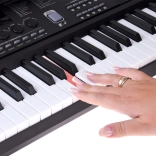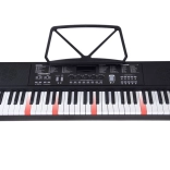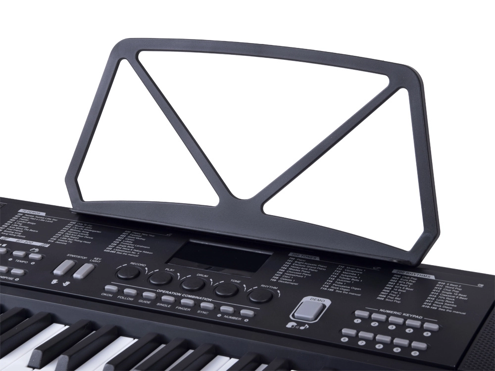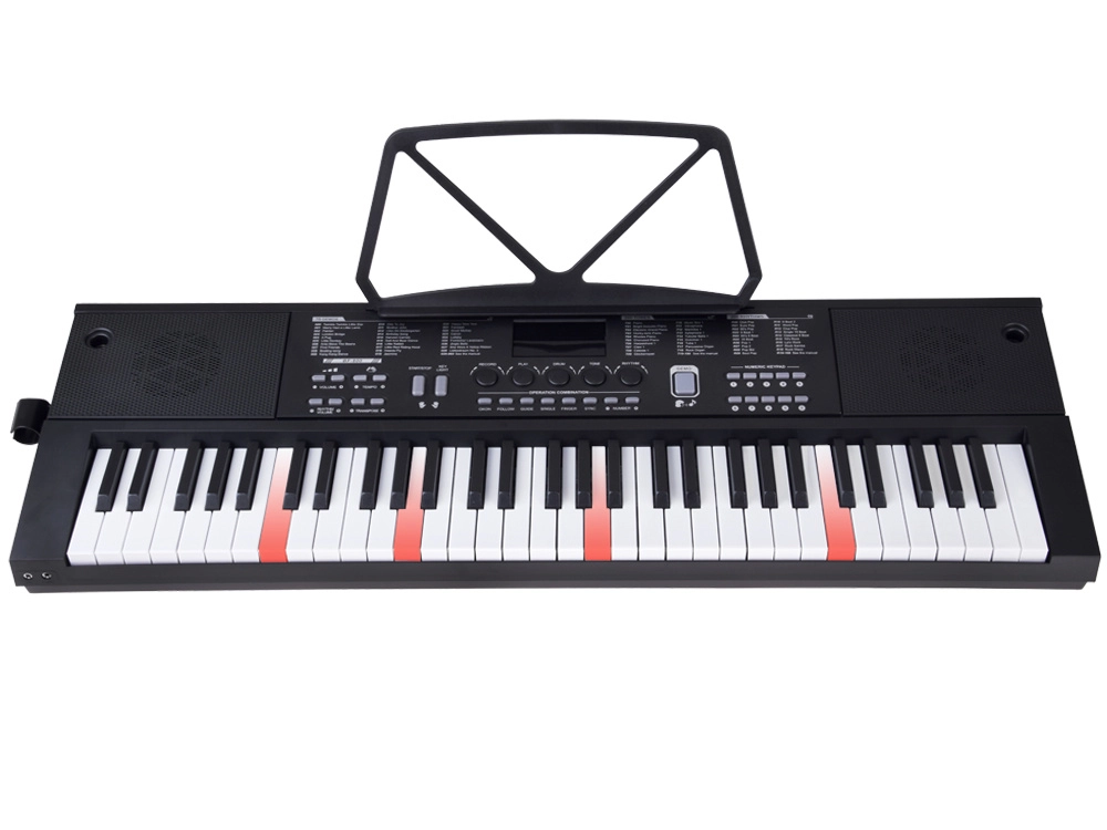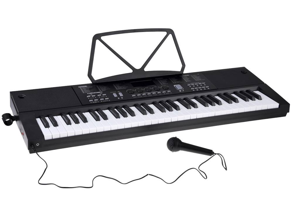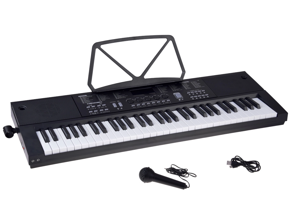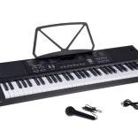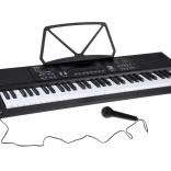 Claviatură universală cu 61 de clape, în design elegant negru, o alegere excelentă pentru începători și avansați. Oferă 200 de sunete, 200 de ritmuri de acompaniament, 70 de piese demo și clape iluminate pentru o învățare mai ușoară. Display-ul LCD clar, funcțiile Record/Play, One Key/Follow/Guide și intrarea USB, împreună cu microfonul inclus, fac din acest instrument un partener excelent pentru exerciții, divertisment și reprezentații acasă.
