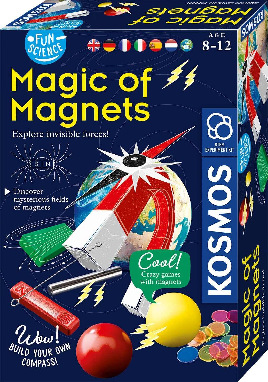 Descoperă lumea fascinantă a magnetismului cu setul științific KOSMOS Magia magneților. Te așteaptă 9 experimente distractive cu magneți și accesorii bogate. Include instrucțiuni în limba cehă disponibile prin cod QR și manual tipărit în limba engleză cu traducere în cehă. Ideal pentru copiii curioși cu vârste între 8 și 12 ani.