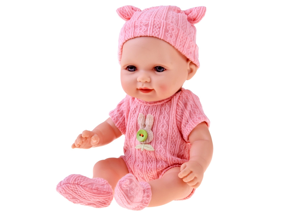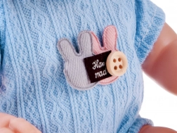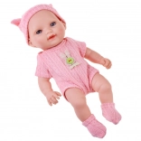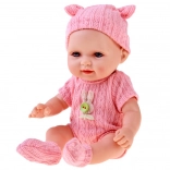 Păpușa bebeluș ușoară, cu înălțimea de 26 cm, este prima păpușă ideală pentru cei mai mici. Are mânuțe, piciorușe și căpșor mobile, astfel încât poate fi așezată sau culcată. Chipul realist, cu gene lungi și trăsături detaliate, va încânta orice copil. Setul include salopetă moale, detașabilă cu arici, căciuliță și botoșei în două culori – roz sau albastru.