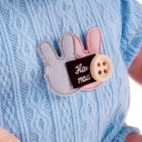 Salopetă detașabilă cu arici, căciuliță și botoșei în roz sau albastru deschis. Îmbrăcarea și dezbrăcarea susțin motricitatea fină.
