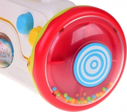 Diverse elemente de control, mărgelele și zornăitoarea antrenează motricitatea fină, susțin concentrarea și oferă efecte sonore distractive.