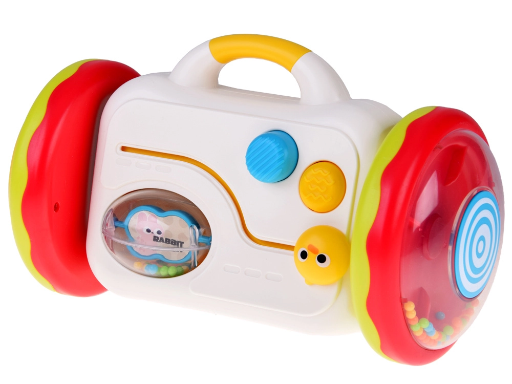 Construcția care se rulează încurajează mișcarea, mersul de-a bușilea și târârea, în timp ce bilele zornăitoare și elementele care fac clic dezvoltă auzul și simțul tactil. Totul este proiectat pentru mâinile mici ale copiilor, pentru a învăța prinderea, glisarea și rotirea.