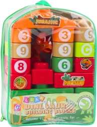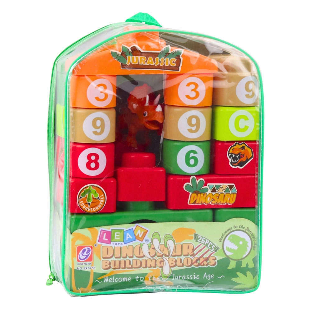 Cuburile sunt ușoare, se prind ușor și sunt sigure pentru utilizare zilnică. Figurina de dinozaur stimulează imaginația și povestirea propriilor aventuri. Întregul set este depozitat într-un rucsăcel transparent cu fermoar, care facilitează organizarea, transportul la grădiniță și deplasările.
