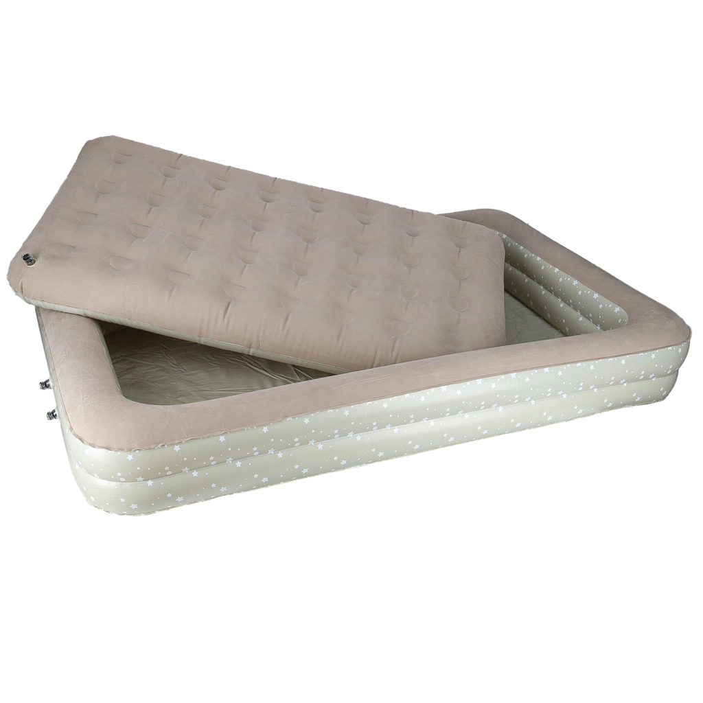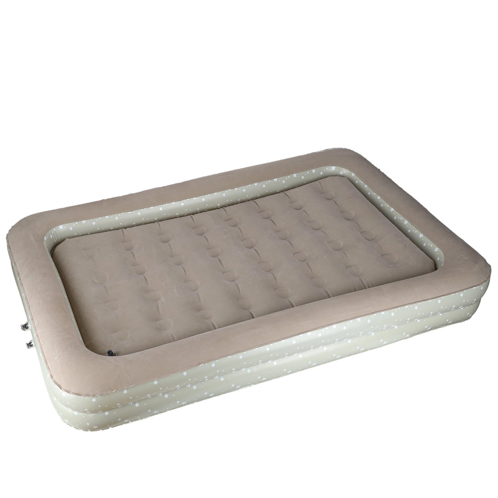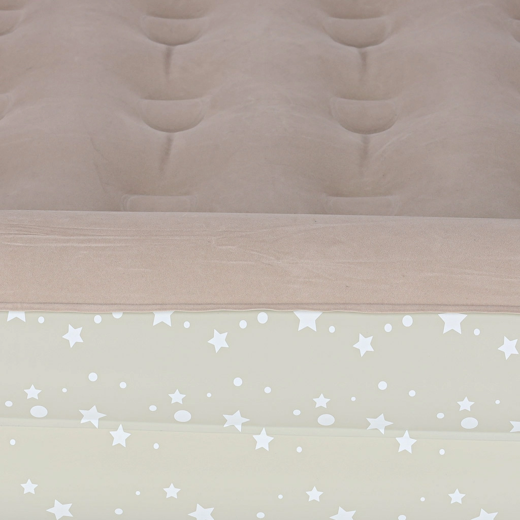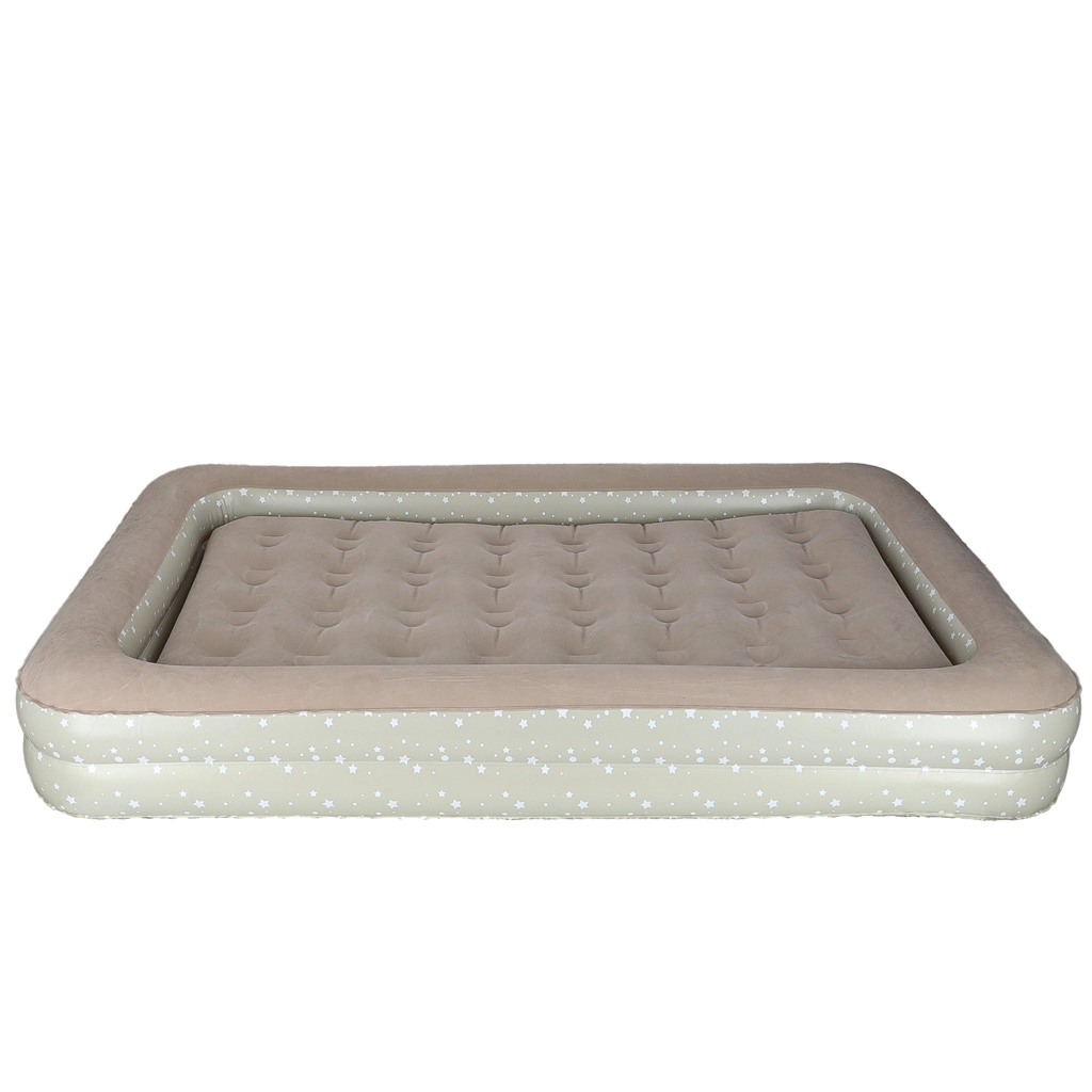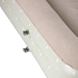 Oferiți copiilor un spațiu confortabil și sigur oriunde – acest pat gonflabil pentru copii din două piese combină un cadru exterior cu margini înălțate și o saltea interioară detașabilă. Suprafața moale flockată (tip semiș) este plăcută la atingere și împiedică alunecarea lenjeriei. Elegantul model cu steluțe conferă patului un aspect jucăuș.