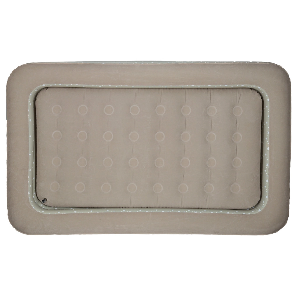 Suprafața moale, flockată, și structura cu camere asigură o poziție plăcută și susținere mai bună. Salteaua interioară poate fi dezumflată și depozitată separat.