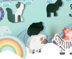 Construcția durabilă din lemn, marginile netede și imprimeurile pastelate delicate asigură distracție sigură și de lungă durată, potrivită de la 12 luni.