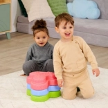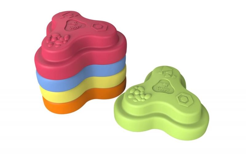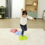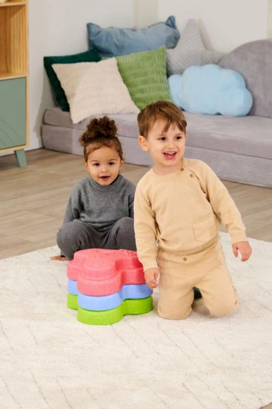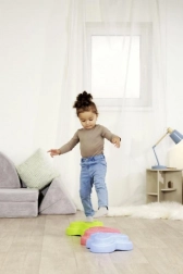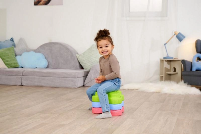Setul HEPPY de pietre de echilibru transformă orice cameră într-o pistă senzorială distractivă. Cinci piese în culori vii (roșu, albastru, verde, portocaliu, galben) îi motivează pe copii să sară, să treacă dintr-una în alta și să construiască, consolidând în mod natural stabilitatea, coordonarea și siguranța mișcărilor.
