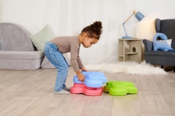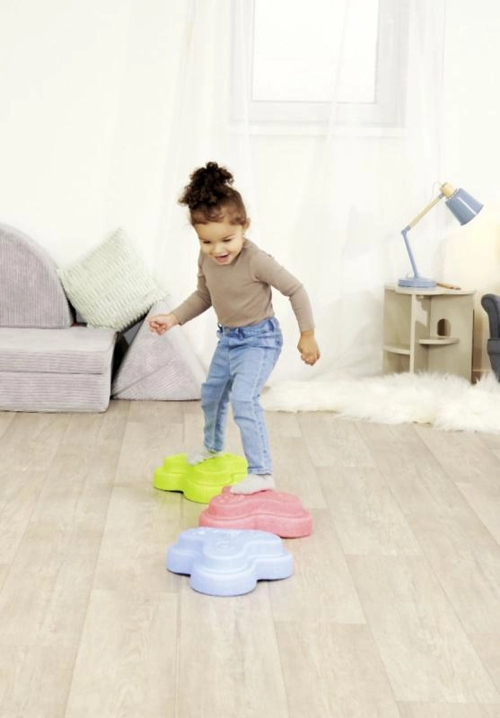 Texturile variate stimulează percepția senzorială, un pas mai sigur și învățarea distractivă a echilibrului. Copiii sunt motivați să încerce pași și combinații noi.