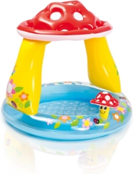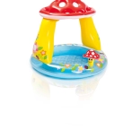 Fabricată din PVC rezistent, piscina oferă rezistență la deteriorare și un joc sigur. Acoperișul în formă de ciupercă protejează împotriva radiațiilor solare, oferind copiilor umbră confortabilă.