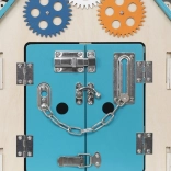 Descoperă o aventură plină de învățătură cu jucăria panou de activități Domeček albastru! Perfectă pentru dezvoltarea abilităților motorii fine și a curiozității, această jucărie captivantă ajută la îmbunătățirea dexterității copilului tău.