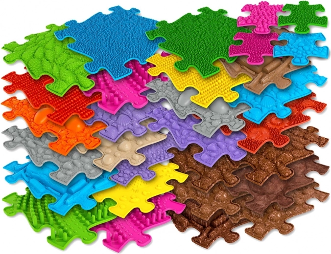 Covorașul ortopedic senzomotor WOOPIE Royal Puzzle este conceput atât pentru joacă zilnică, cât și pentru exerciții țintite. Suprafețele variate precum „cocos”, „trunchi”, „nuci”, „iarbă” sau „scoici” oferă stimulare naturală a receptorilor de pe tălpi, susțin integrarea senzorială și ajută la prevenirea piciorului plat. Piesele se îmbină ca puzzle, astfel încât îți creezi ușor un traseu personalizat.