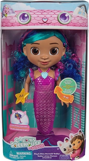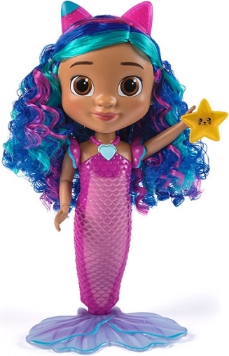 Sirena Gabi din filmul Căsuța magică a lui Gabi le oferă copiilor o combinație de lumini, sunete și efecte acvatice. Apăsați colierul în formă de inimă și bucurați-vă de efecte luminoase și 14 sunete și fraze autentice. Coada păpușii își schimbă culoarea în apă caldă, astfel încât fiecare baie sau joacă în apă devine plină de surprize.