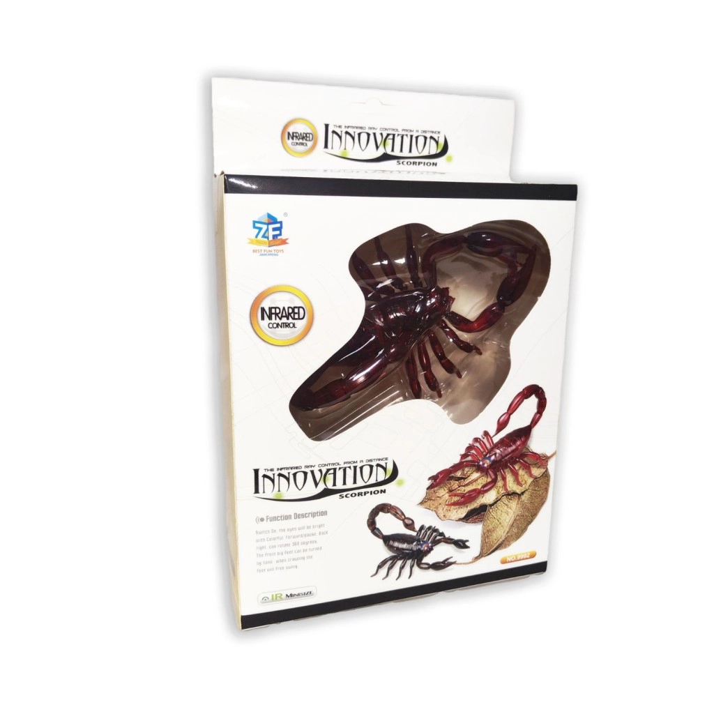 Acest scorpion cu telecomandă îi va încânta pe micii și marii fani ai jucăriilor robotice. Datorită controlului prin infraroșu, se deplasează înainte, înapoi, la stânga și la dreapta, în timp ce ochii LED oferă un efect vizual atractiv. Controlul este ușor și distractiv, cu o rază de până la 8 metri.