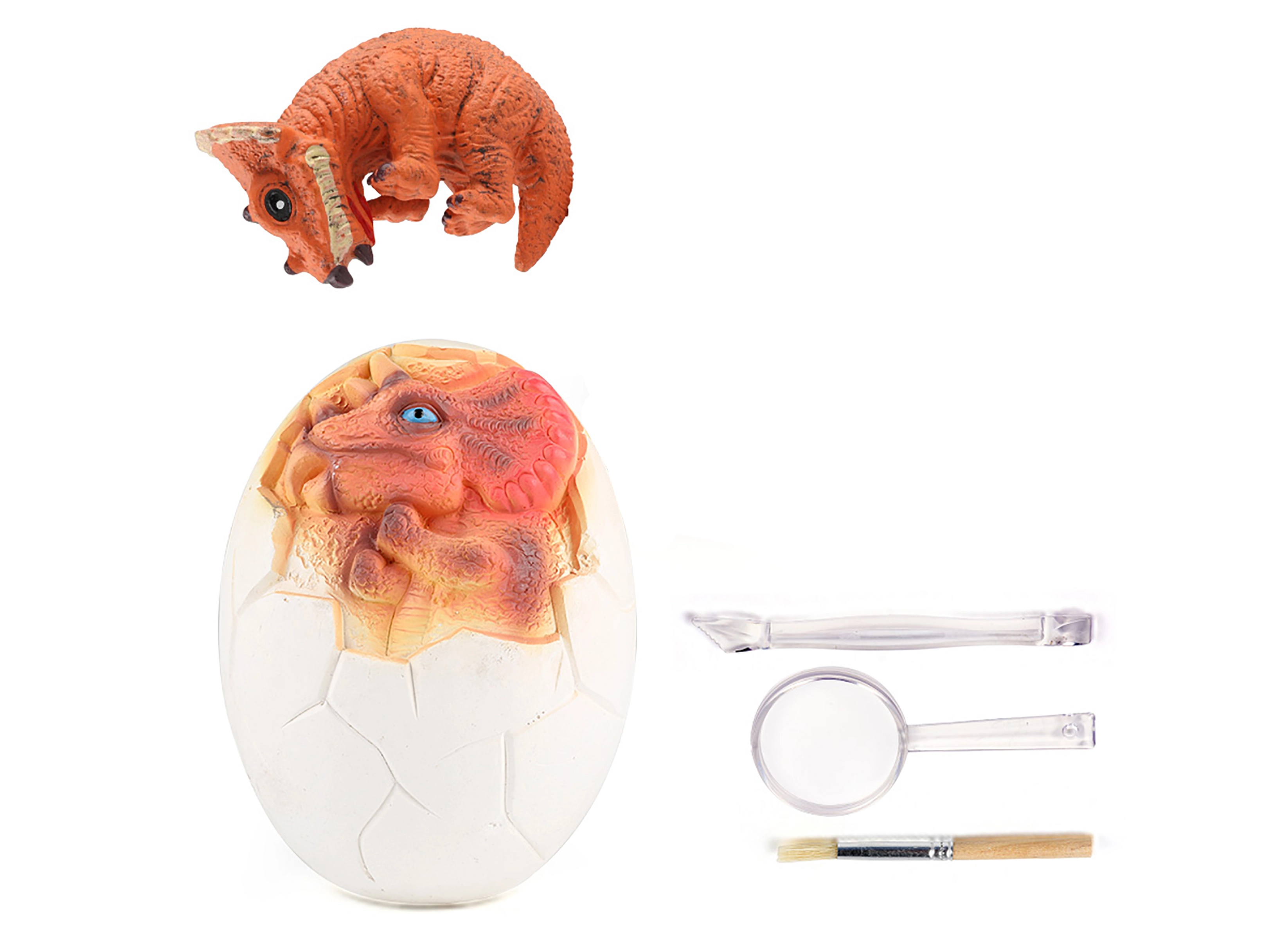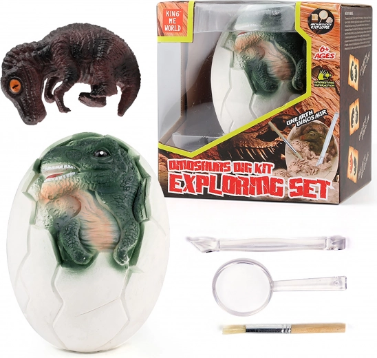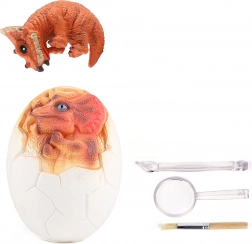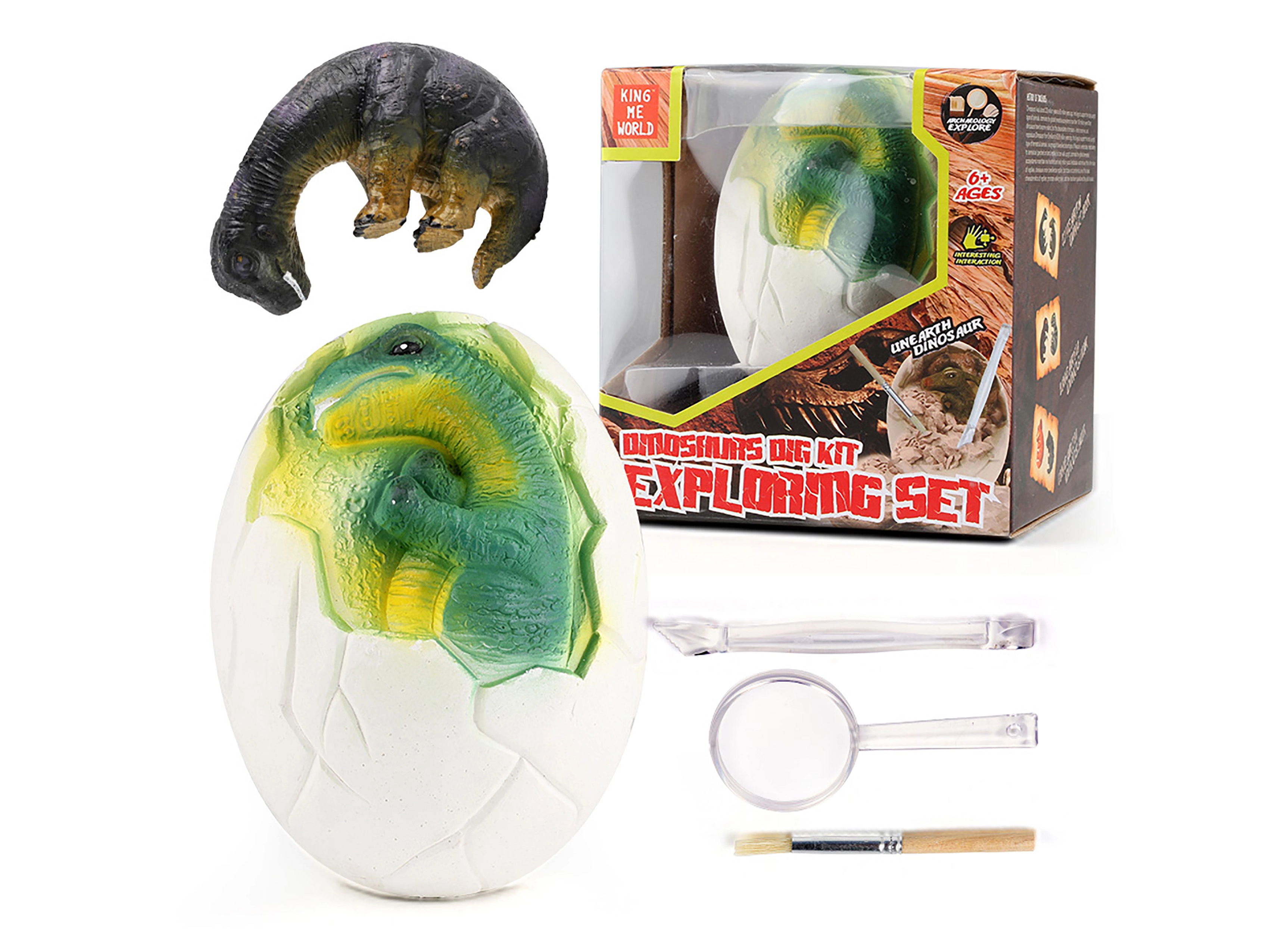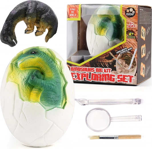 Acest set arheologic transformă orice copil într-un mic paleontolog. În oul solid din ghips este ascuns un dinozaur colorat, pe care copiii îl dezvăluie treptat cu ajutorul instrumentelor incluse. Săpătura este sigură și distractivă, ideală ca dar și ca activitate creativă acasă.