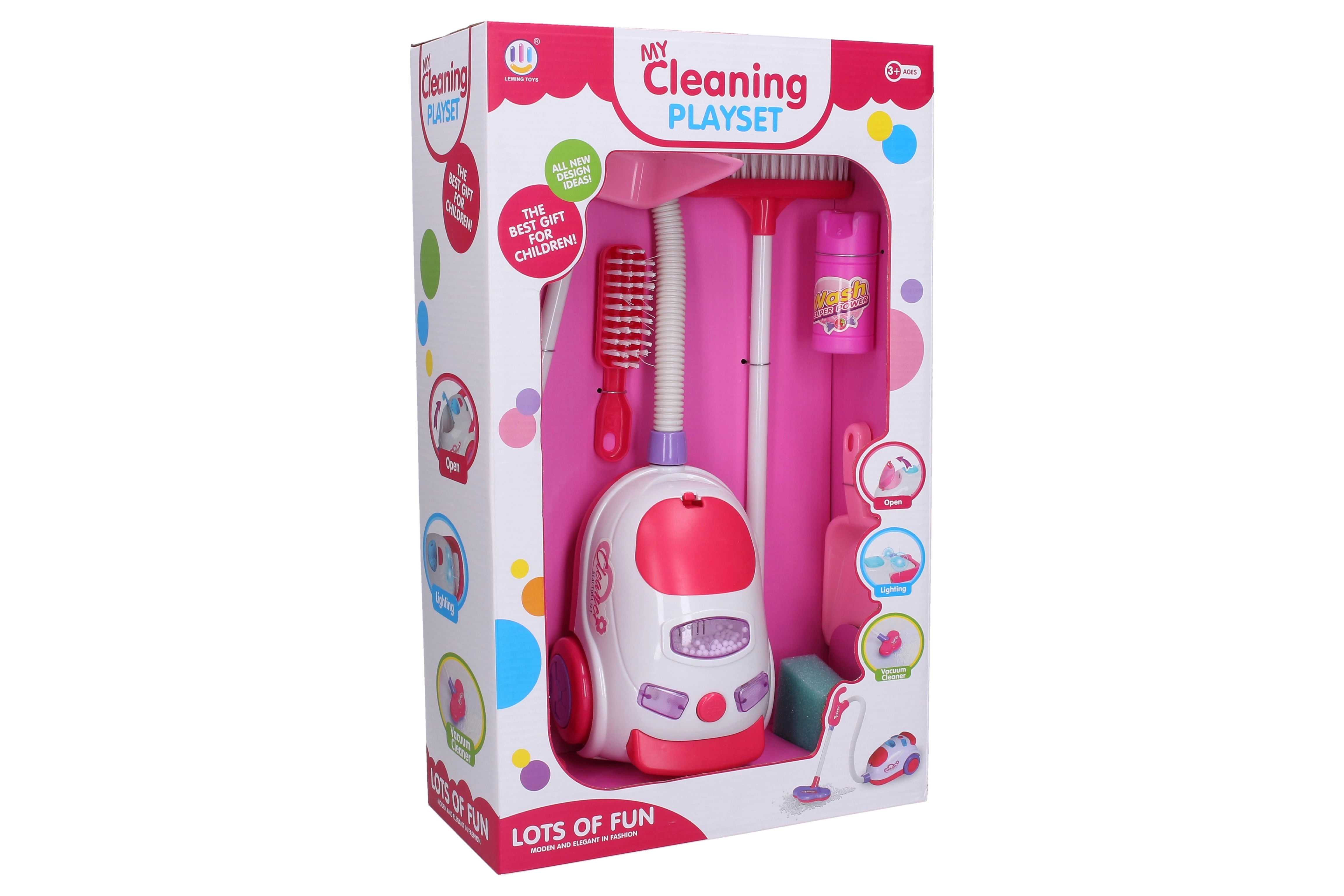 Set de curățenie distractiv pentru copii, cu aspirator funcțional pentru bile din polistiren și efecte luminoase. Include 9 accesorii practice pentru un joc de rol realist în gospodărie. Aspirare funcțională, efecte luminoase și accesorii bogate care stimulează imaginația și dezvoltă motricitatea fină.